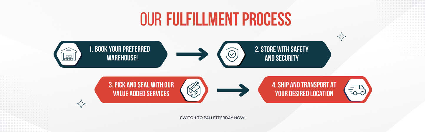 Welcome to Palletperday, your trusted logistics service provider in India! We specialize in e-commerce logistics and fulfillment in Delhi NCR, offering a comprehensive range of all-in-one services. From transportation management in Delhi to storage solutions in Delhi, our flexible warehousing solutions and 3PL warehousing services in Delhi cater to your specific needs. Experience seamless logistics with Palletperday today!